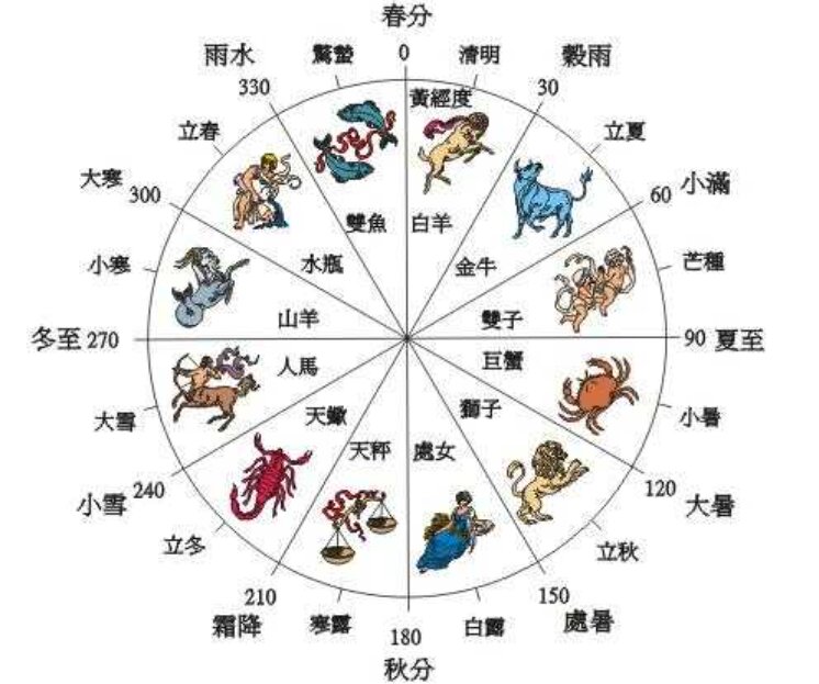黃道十二宮的標(biāo)準(zhǔn)起算點(diǎn)定于春分,隨著節(jié)令的更迭而轉(zhuǎn)換宮位;而十二將的起算點(diǎn)則設(shè)在雨水,依據(jù)中氣的變化來(lái)更換神將。
