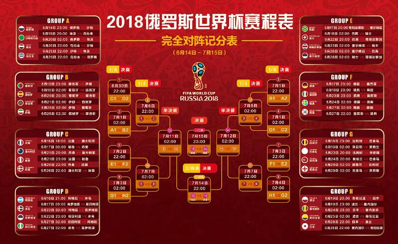 2018年俄羅斯世界杯賽程俄羅斯世界杯賽程于2018年6月14日至7月15日在俄羅斯境內(nèi)11座城市中的12座球場(chǎng)內(nèi)進(jìn)行,一共有32支球隊(duì)參與角逐。這是世界杯首次在俄羅斯舉行,亦是世界杯首次在東歐國(guó)家舉行。
